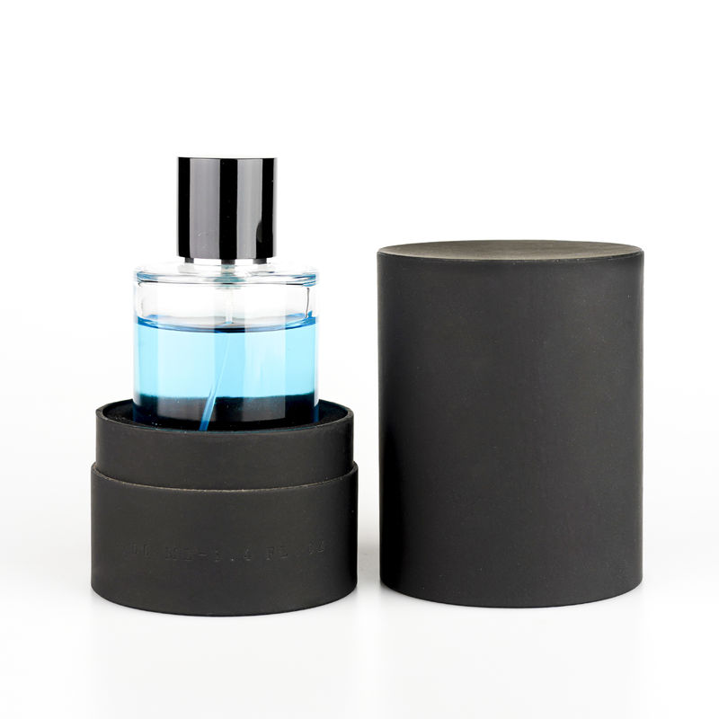 • Luxury Black Magnetic Cap 100ml Glass Perfume Bottle with Round Rigid Paper Box